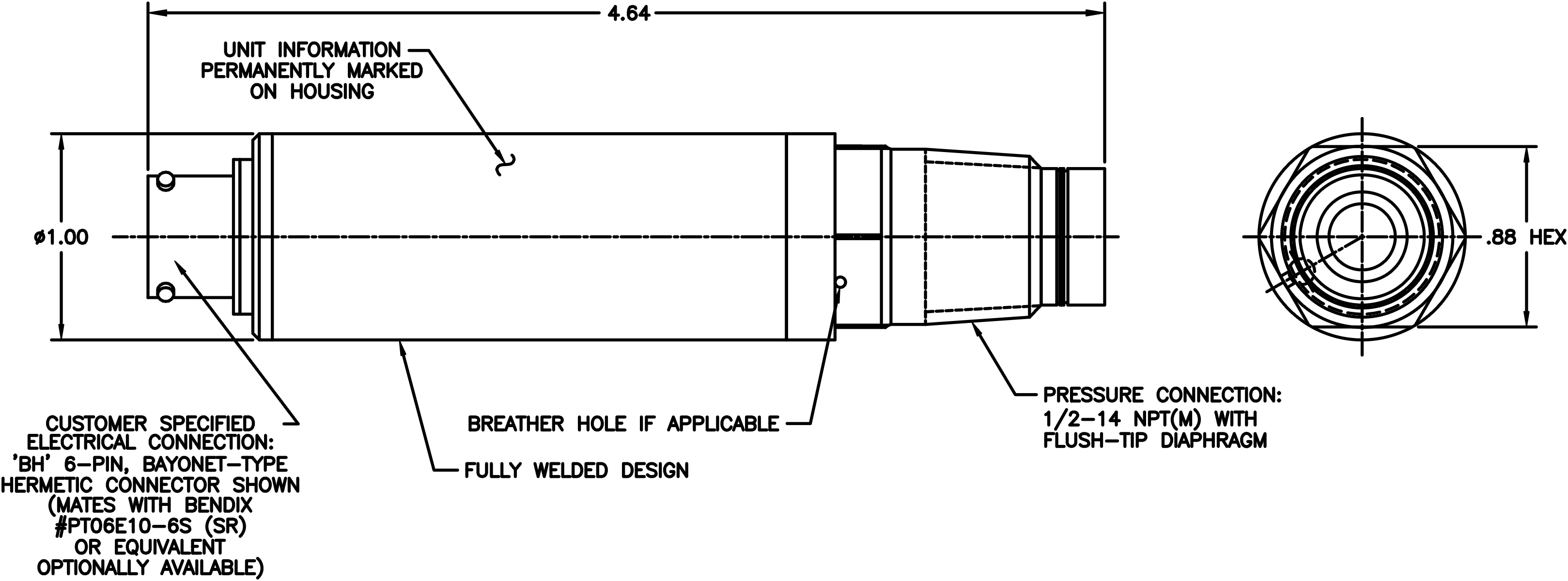 The Model 386 Flush Tip – Zero Cavity design offers an Isolated sensor assembly that virtually eliminates installation torque effect and is able to withstand pressure spikes up to 1.5x proof pressure and 5x burst pressure (or 30,000 PSI, whichever is less).